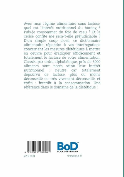 Avec mon régime alimentaire sans lactose, quel est l'intérêt nutritionnel du hareng ? Puis-je consommer du foie de veau ? Et la cerise confite me sera-t-elle préjudiciable ? D'un simple coup d'oeil, ce dictionnaire alimentaire répondra à vos interrogations concernant les mesures diététiques à mettre en oeuvre pour éradiquer efficacement et totalement le lactose de votre alimentation. Classés par ordre alphabétique, près de 3000 aliments sont notés selon leur intérêt nutritionnel : neutre car totalement dépourvu de lactose, plus ou moins déconseillé ou très vivement déconseillé, et enfin : interdit à la consommation. Une référence dans le domaine de la diététique !