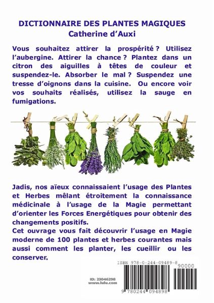 Un dictionnaire de 100 plantes à cultiver, à récolter ou à acheter en sachet. Leur usage en magie verte ou végétale est strictement externe mais vous apprendrez avec cet ouvrage comment donner à ces plantes une part d'Energie Divine.