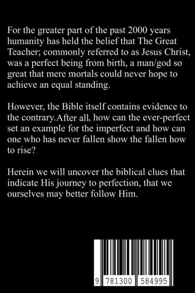 For the greater part of the past 2000 years humanity has held the belief that The Great Teacher; commonly referred to as Jesus Christ, was a perfect being from birth, a man/god so great that mere mortals could never hope to achieve an equal standing. However, the Bible itself contains evidence to the contrary. After all, how can the ever-perfect set an example for the imperfect and how can one who has never fallen show the fallen how to rise? Herein, we will uncover the biblical clues that indicate His journey to perfection, that we ourselves may better follow Him.