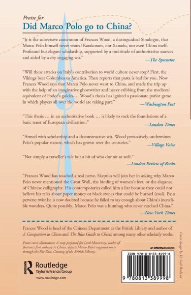 We all ?know? that Marco Polo went to China, served Ghengis Khan for many years, and returned to Italy with the recipes for pasta and ice cream. But Frances Wood, head of the Chinese Department at the British Library, argues that Marco Polo not only never went to China, he probably never even made it past the Black Sea, where his family conducted business as merchants.Marco Polo's travels from Venice to the exotic and distant East, and his epic book describing his extraordinary adventures, A Description of the World, ranks among the most famous and influential books ever published. In this fascinating piece of historical detection, marking the 700th anniversary of Polo's journey, Frances Wood questions whether Marco Polo ever reached the country he so vividly described. Why, in his romantic and seemingly detailed account, is there no mention of such fundamentals of Chinese life as tea, foot-binding, or even the Great Wall? Did he really bring back pasta and ice cream to Italy? And why, given China's extensive and even obsessive record-keeping, is there no mention of Marco Polo anywhere in the archives?Sure to spark controversy, Did Marco Polo Go to China? tries to solve these and other inconsistencies by carefully examining the Polo family history, Marco Polo's activities as a merchant, the preparation of his book, and the imperial Chinese records. The result is a lucid and readable look at medieval European and Chinese history, and the characters and events that shaped this extraordinary and enduring myth.