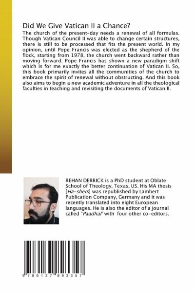 The church of the present-day needs a renewal of all formulas. Though Vatican Council II was able to change certain structures, there is still to be processed that fits the present world. In my opinion, until Pope Francis was elected as the shepherd of the flock, starting from 1978, the church went backward rather than moving forward. Pope Francis has shown a new paradigm shift which is for me exactly the better continuation of Vatican II. So, this book primarily invites all the communities of the church to embrace the spirit of renewal without obstructing. And this book also aims to begin a new academic adventure in all the theological faculties in teaching and revisiting the documents of Vatican II.