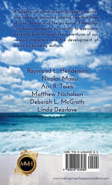 A collection of stories covering mystery, murder and betrayal balanced against heartfelt tales of love, family and the power of friendship. This book represents our ability to overcome adversity both through the adventures of our various characters and the development of works by budding authors. Raymond L. Henderson Nicolas Massu Arri R. Taieb Matthew Nicholson Deborah L. McGrath Linda Dearlove