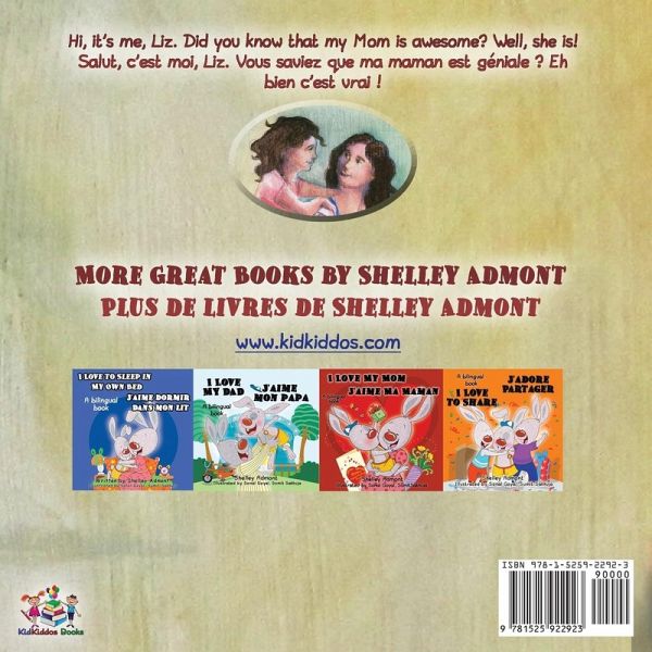 English French Bilingual children's book. Perfect for kids studying English or French as their second language. In this touching bedtime story, a little girl describes why her Mom is awesome. We see her going through her day, carrying the warmest feeling about her mother. Mom always knows how she feels and can help with any problem. Mom can make the most complicated braid and explain fractions; Mom can help to wake her up in the morning and hug her tightly when she's sad. With adorable illustrations and a message to which everyone can relate, this is a perfect book for kids and their moms.