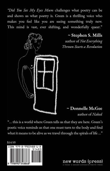 Slimy and slipping between mind and matter, Did You See My Eyes Mum involves exploration of attachment, queerness, capitalism, privatisation, sex & power. The writing is an exercise of the narrator's emotional processing; by weaving together various spheres in their life, the links between them become apparent. The work begins to tap into patterns of anxiety, with attention to its sources being both intimate and systemic. Keeping to a kind of musicality, the work comes to life when read aloud. Upon first look, the mix of format can be categorised into 'prose' and 'poetry', however the form is much more dependent on rhythm and feeling. In fact, categorisation is exactly what tit resists. As the relationships and ideas of self, relating to gender and consumption, are deconstructured the form is mobile. There is a tone of questioning and vulnerability. From opening up spaces of childhood trauma, to discussing gender politics with a spider, Did You See My Eyes Mum is not afraid to peel back wounds and find the lightness in confrontation.
