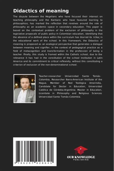 The dispute between the Hegelians who have focused their interest on teaching philosophy and the Kantians who have favoured learning to philosophise, has marked the reflection that revolves around the role of philosophy as an academic space in secondary education. This paper is based on the contextual problem of the exclusion of philosophy in the legislative proposals of public policy in Colombian education, identifying that the absence of a defined place within the curriculum has blurred its in the educational work of the school. In this framework, the Didactics of meaning is proposed as an analogical perspective that generates a dialogue between meaning and signifier, in the context of pedagogical practice as a field of metacognition and transformation in the profession of being a teacher. Finally, this study is framed within the Catholic school, due to the relevance it has had in the constitution of the school institution in Latin America and its commitment to critical reflexivity, without this constituting a criterion of exclusion of the non-denominational school.
