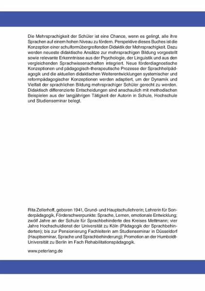 Die Mehrsprachigkeit der Schüler ist eine Chance, wenn es gelingt, alle ihre Sprachen auf einem hohen Niveau zu fördern. Perspektive dieses Buches ist die Konzeption einer schulformübergreifenden Didaktik der Mehrsprachigkeit. Dazu werden neueste didaktische Ansätze zur mehrsprachigen Bildung vorgestellt sowie relevante Erkenntnisse aus der Psychologie, der Linguistik und aus den vergleichenden Sprachwissenschaften integriert. Neue förderdiagnostische Konzeptionen und pädagogisch-therapeutische Prozesse der Sprachheilpädagogik und die aktuellen didaktischen Weiterentwicklungen systemischer und reformpädagogischer Konzeptionen werden adaptiert, um der Dynamik und Vielfalt der sprachlichen Bildung mehrsprachiger Schüler gerecht zu werden. Didaktisch differenzierte Entscheidungen sind anschaulich mit methodischen Beispielen aus der langjährigen Tätigkeit der Autorin in Schule, Hochschule und Studienseminar belegt.