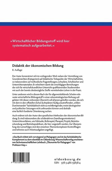 Obgleich ökonomische Bildung - wenn auch nur vereinzelt verselbständigt, so doch im Verbund mit politischer Bildung - seit geraumer Zeit mehr oder weniger ausgeprägt Berücksichtigung in den länderspezifischen Lehrplänen allgemeinbildender Schulen findet, sind die damit verbundenen didaktischen Fragestellungen bislang immer noch nicht hinreichend in ihrer Komplexität erfasst. Auslassungen zur Didaktik der ökonomischen Bildung bleiben großteils auf didaktische Teilaspekte der Wirtschaftslehre, so insbesondere auf methodische Fragestellungen, Lehrpläne, Schulbücher und Unterrichtsmaterialien beschränkt. Diese Tatsache ist in hohem Maße bedauerlich und erschwert die einschlägigen Bemühungen der sich für wirtschaftskundlichen Unterricht qualifizierenden Studierenden wie auch der bereits diesbezügliche Stoffe vermittelnden Lehrer in der Praxis. Unter anderem wird der für allgemeinbildende Schulen relevanten wirtschaftlichen Bildungsstoff in einer erkenntnislogischen Reihung aufgelistet. Mit dieser ordnenden Übersicht soll all jenen geholfen werden, die sich mit dem in den offiziellen (Schul-)Lehrplänen häufig anzutreffenden "wilden Durcheinander" fachdidaktisch nicht zu rechtfertigender, meist ideologischer und politischer Setzungen nicht anfreunden können und deshalb eine fachlich fundierte Orientierung suchen. Auch widmet sich der Autor den spezifischen Methoden der ökonomischen Bildung. Es sind insbesondere die schüleraktiven (handlungsorientierten) Unterrichtsverfahren, wie Fallstudie, Rollenspiel, Planspiel, Projekt, Betriebserkundung und Betriebspraktikum, die hier vorgestellt werden. Zur Überprüfung des Lernerfolges sind den einzelnen Themenkomplexen Kontrollfragen und gegebenenfalls auch Arbeitsaufgaben angefügt. Das Werk stellt die Aspekte der Didaktik der ökonomischen Bildung nicht nur in einigen Teilen dar, sondern bietet den sich für wirtschaftskundlichen Unterricht qualifizierenden Studierenden wie auch den bereits diesbezüglich Stoffe vermittelnden Lehrenden der Praxis eine umfassende Grundlage. Das Buch richtet sich vorwiegend an Pädagogen und ist das fachdidaktische Komplement zu dem ebenfalls im Oldenbourg Wissenschaftsverlag erschienenen fachwissenschaftlichen Lehrbuch "Ökonomie für Pädagogen" von Professor May.