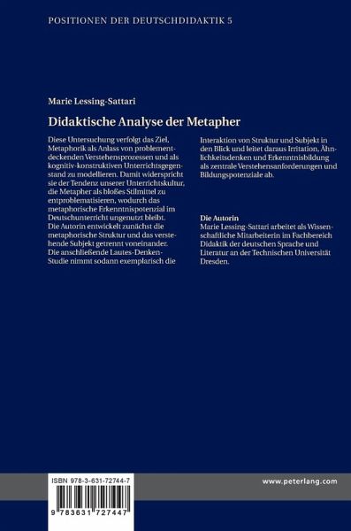 Diese Untersuchung verfolgt das Ziel, Metaphorik als Anlass von problementdeckenden Verstehensprozessen und als kognitiv-konstruktiven Unterrichtsgegenstand zu modellieren. Damit widerspricht sie der Tendenz unserer Unterrichtskultur, die Metapher als bloßes Stilmittel zu entproblematisieren, wodurch das metaphorische Erkenntnispotenzial im Deutschunterricht ungenutzt bleibt. Die Autorin entwickelt zunächst die metaphorische Struktur und das verstehende Subjekt getrennt voneinander. Die anschließende Lautes-Denken-Studie nimmt sodann exemplarisch die Interaktion von Struktur und Subjekt in den Blick und leitet daraus Irritation, Ähnlichkeitsdenken und Erkenntnisbildung als zentrale Verstehensanforderungen und Bildungspotenziale ab.