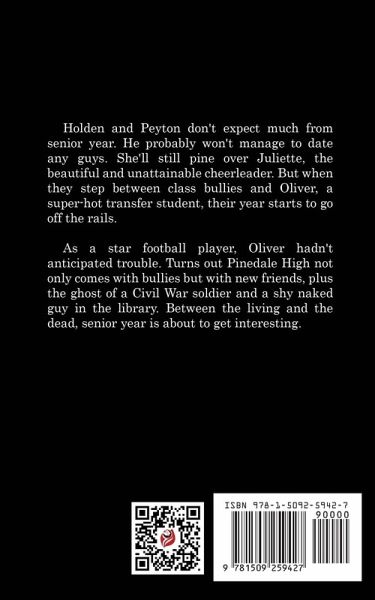 Holden and Peyton don't expect much from senior year. He probably won't manage to date any guys. She'll still pine over Juliette, the beautiful and unattainable cheerleader. But when they step between class bullies and Oliver, a super-hot transfer student, their year starts to go off the rails. As a star football player, Oliver hadn't anticipated trouble. Turns out Pinedale High not only comes with bullies but with new friends, plus the ghost of a Civil War soldier and a shy naked guy in the library. Between the living and the dead, senior year is about to get interesting.