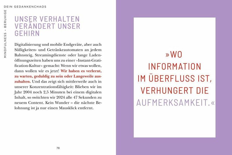 Neuro-Coach und SPIEGEL-Bestsellerautorin Cordula Nussbaum zeigt dir, wie du mit smarten Mini-Moves sofort wieder ins Gleichgewicht kommst - ohne stundenlange Routinen oder komplizierte Pläne. Du lernst, welche Risikofaktoren und Einflussgrößen in deinem Umfeld auf deine mentale Gesundheit wirken - und wie du sie erkennst, bevor sie dich überrollen. Du wirst sensibilisiert für erste Warnzeichen von Stress und Überlastung und bekommst konkrete Strategien an die Hand, um gegenzusteuern.