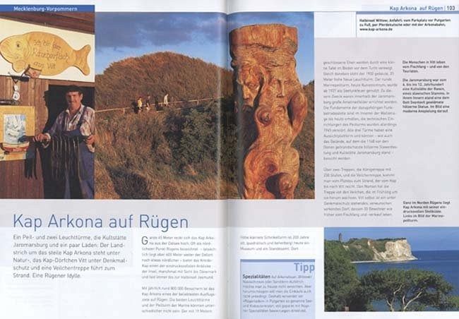 Innerhalb der Bundesländerkapitel wird jeder “Ort” auf einer Doppelseite vorgestellt mit einem informativen Text und Bildern.