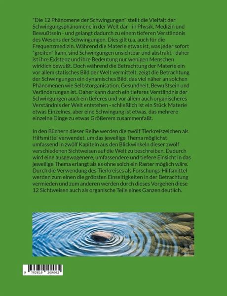 "Die 12 Phänomene der Schwingungen" stellt die Vielfalt der Schwingungsphänomene in der Welt dar - in Physik, Medizin und Bewußtsein - und gelangt dadurch zu einem tieferen Verständnis des Wesens der Schwingungen. Dies gilt u.a. auch für die Frequenzmedizin. Während die Materie etwas ist, was jeder sofort "greifen" kann, sind Schwingungen unsichtbar und abstrakt - daher ist ihre Existenz und ihre Bedeutung nur wenigen Menschen wirklich bewußt. Doch während die Betrachtung der Materie ein vor allem statisches Bild der Welt vermittelt, zeigt die Betrachtung der Schwingungen ein dynamisches Bild, das viel näher an solchen Phänomenen wie Selbstorganisation, Gesundheit, Bewußtsein und Veränderungen ist. Daher kann durch ein tieferes Verständnis der Schwingungen auch ein tieferes und vor allem auch organischeres Verständnis der Welt entstehen - schließlich ist ein Stück Materie etwas Einzelnes, aber eine Schwingung ist etwas, das mehrere einzelne Dinge zu etwas Größerem zusammenfaßt. In den Büchern dieser Reihe werden die zwölf Tierkreiszeichen als Hilfsmittel verwendet, um das jeweilige Thema möglichst umfassend in zwölf Kapiteln aus den Blickwinkeln dieser zwölf verschiedenen Sichtweisen auf die Welt zu beschreiben. Dadurch wird eine ausgewogenere, umfassendere und tiefere Einsicht in das jeweilige Thema erlangt als es ohne solch ein Raster möglich wäre. Durch die Verwendung des Tierkreises als Forschungs-Hilfsmittel werden zum einen die gröbsten Einseitigkeiten in der Betrachtung vermieden und zum anderen werden durch dieses Vorgehen diese 12 Sichtweisen auch als organische Teile eines Ganzen deutlich.