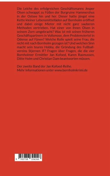 Die Leiche des erfolgreichen Geschäftsmanns Jesper Olsen schwappt zu Füßen der Burgruine Hammershus in der Ostsee hin und her. Dieser hatte jüngst eine Kette kleiner Lebensmittelläden auf Bornholm eröffnet und dabei einige Mieter mit nicht ganz sauberen Methoden vertrieben. Hat einer von ihnen Olsen in seinem Zorn umgebracht? Was ist mit seinen früheren Geschäftspartnern in Vollsmose, dem Problemviertel in Odense auf Fünen? Welche Rolle spielt seine Frau, die nicht mit nach Bornholm gezogen ist? Und welchen Sinn macht sein teures Hobby, die Gründung des Fußballvereins Stjernen IF? Fragen über Fragen, die die vier Bornholmer Ermittler Jan Kofoed, Karen Rasmussen, Ditte Holm und Christian Dam beantworten müssen.