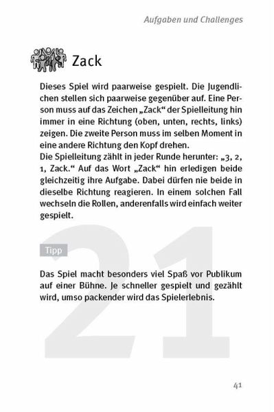 Ob Gruppenstunde, Ferienlager oder Jugendarbeit - die Ideen aus diesem Spielebuch sorgen für Abwechslung, helfen beim Kennenlernen und stärken den Teamgeist! Schnell und unkompliziert können die Gruppenleiterinnen und Gruppenleiter in Zusammenarbeit mit den Jugendlichen die verschiedenen Spiele, Challenges und Aufgaben ausprobieren. Bei so viel Auswahl hat Langeweile keine Chance und bei dem geringen Vorbereitungsaufwand fehlt jede Ausrede, warum Rumsitzen und daddeln gerade besser wäre!
