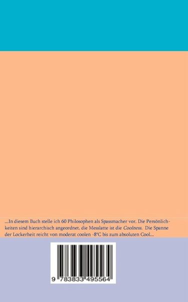 ..In diesem Buch stelle ich 60 Philosophen als Spassmacher vor. Die Persönlichkeiten sind hierarchisch angeordnet, die Messlatte ist die Coolness. Die Spanne der Lockerheit reicht von moderat coolen -8°C bis zum absoluten Cool...