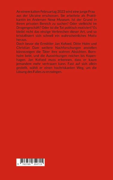 An einem kalten Februartag 2023 wird eine junge Frau aus der Ukraine erschossen. Sie arbeitete als Praktikantin im Andersen Nexø Museum. Ist der Grund in ihrem privaten Bereich zu suchen? Oder vielleicht im Drogengeschäft? Oder ist die Tat politisch motiviert? Es bleibt nicht das einzige Verbrechen dieser Art, und so kristallisiert sich schnell ein wahrscheinliches Motiv heraus. Doch bevor die Ermittler Jan Kofoed, Ditte Holm und Christian Dam weitere Nachforschungen anstellen können, zeigen die Täter ihre wahren Absichten. Bornholm bebt, und die Auswirkungen reichen bis Kopenhagen. Jan Kofoed muss erkennen, dass er kaum jemandem mehr vertrauen kann. Fast auf sich allein gestellt, wählt er einen hochriskanten Weg, um die Lösung des Falles zu erzwingen.