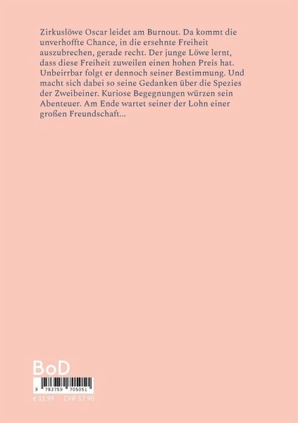 Zirkuslöwe Oscar leidet am Burnout. Da kommt die unverhoffte Chance, in die ersehnte Freiheit auszubrechen, gerade recht. Der junge Löwe lernt, dass diese Freiheit zuweilen einen hohen Preis hat. Unbeirrbar folgt er dennoch seiner Bestimmung. Und macht sich dabei so seine Gedanken über die Spezies der Zweibeiner. Kuriose Begegnungen würzen sein Abenteuer. Am Ende wartet seiner der Lohn einer großen Freundschaft...