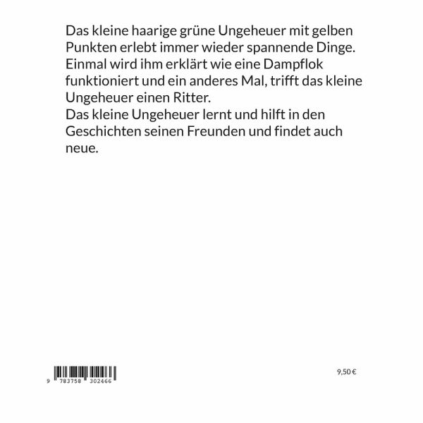 Das kleine haarige grüne Ungeheuer mit gelben Punkten erlebt immer wieder spannende Sachen. Einmal wird ihm erklärt wie eine Dampflok funktioniert und ein anderes Mal, trifft das kleine Ungeheuer einen Ritter. Das kleine Ungeheuer lernt und hilft in den Geschichten seinen Freunden und findet auch neue.