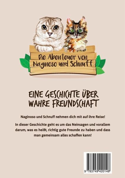 Naginoso und Schnuff nehmen Dich mit auf ihre Reise!In dieser Geschichte geht es um das Neinsagen und vor allem darum, was es heißt, richtig gute Freunde zu haben und dass man gemeinsam alles schaffen kann!