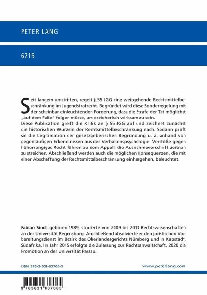 Seit langem umstritten, regelt § 55 JGG eine weitgehende Rechtsmittelbeschränkung im Jugendstrafrecht. Begründet wird diese Sonderregelung mit der scheinbar einleuchtenden Forderung, dass die Strafe der Tat möglichst "auf dem Fuße" folgen müsse, um erzieherisch wirksam zu sein.