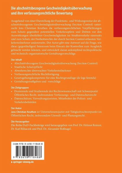Ausgehend von einer Darstellung der Funktions- und Wirkungsweise der abschnittsbezogenen Geschwindigkeitsüberwachung (Section Control) untersucht Jens Christian Keuthen die verfassungsrechtlichen Verpflichtungen zum Schutz gegenüber potentiellen Verkehrsopfern und Dritten vor den Auswirkungen überhöhter Geschwindigkeiten im Straßenverkehr einerseits und zum Schutz der Freiheitsrechte der durch Section Control erfassten Verkehrsteilnehmer andererseits. Der Autor gibt eine Antwort auf die Frage, wie diese (gegenläufigen) Interessen beim Einsatz der Kontrollen zum Ausgleich gebracht werden können, und entwickelt daran anknüpfend rechtspolitische und technisch-organisatorische Gestaltungsvorschläge.