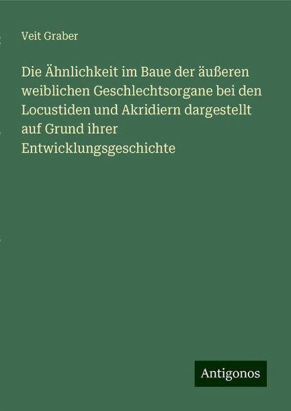Die Ähnlichkeit im Baue der äußeren weiblichen Geschlechtsorgane bei den Locustiden und Akridiern dargestellt auf Grund ihrer Entwicklungsgeschichte - Graber, Veit