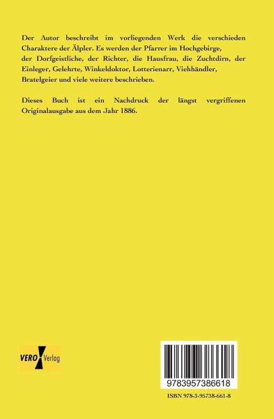 Der Autor beschreibt im vorliegenden Werk die verschieden Charaktere der Älpler. Es werden der Pfarrer im Hochgebirge,