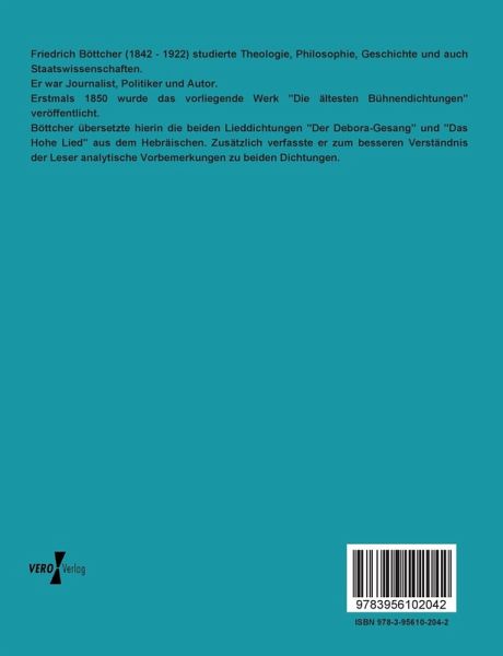 Böttcher übersetzte hierin die beiden Lieddichtungen "Der Debora-Gesang" und "Das Hohe Lied" aus dem Hebräischen. Zusätzlich verfasste er zum besseren Verständnis der Leser analytische Vorbemerkungen zu beiden Dichtungen.