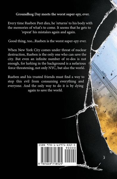 Groundhog Day meets the worst super-spy, ever. Every time Rueben Peet dies, he 'returns' to his body with the memories of what's to come. It seems that he gets to 'repeat' his mistakes again and again. Good thing, too...Rueben is the worst super-spy ever. When New York City comes under threat of nuclear destruction, Rueben is the only one who can save the city. But even an infinite number of re-dos is not enough, for lurking in the background is a nefarious force threatening, not only NYC, but also the world. Rueben and his trusted friends must find a way to stop this evil from consuming everything and everyone. And the only way to do it is by dying again to save the world.