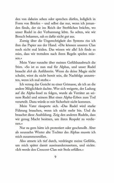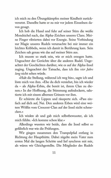 Der Empfang, sowohl die Abholung durch die vier Erben des Alpha-Königs wie auch der Ankunft auf der Insel, ist alles andere als lieb oder freundlich gesinnt. Ebenso gibt es Ungereimtheiten, wer wirklich der Feind ist: Der ausgestoßene Crescent-Clan oder der Alpha-König und die, die um ihn herumstehen? Vielleicht ja auch die Hochmagier selbst?