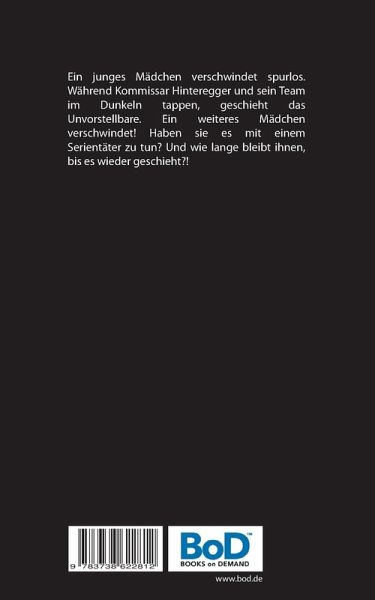 Ein junges Mädchen verschwindet spurlos. Während Kommissar Hinteregger und sein Team im Dunkeln tappen, geschieht das Unvorstellbare. Ein weiteres Mädchen verschwindet! Haben sie es mit einem Serientäter zu tun? Und wie lange bleibt ihnen, bis es wieder geschieht?!
