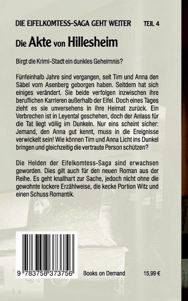 Birgt die Krimi-Stadt ein dunkles Geheimnis? Fünfeinhalb Jahre sind vergangen, seit Tim und Anna den Säbel vom Asenberg geborgen haben. Seitdem hat sich einiges verändert. Sie beide verfolgen inzwischen ihre beruflichen Karrieren außerhalb der Eifel. Doch eines Tages zieht es sie unversehens in ihre Heimat zurück. Ein Verbrechen ist in Leyental geschehen, doch der Anlass für die Tat liegt völlig im Dunkeln. Nur eins scheint sicher: Jemand, den Anna gut kennt, muss in die Ereignisse verwickelt sein! Wie können Tim und Anna Licht ins Dunkel bringen und gleichzeitig die vertraute Person schützen? Die Helden der Albenhain-Saga sind erwachsen geworden. Dies gilt auch für den neuen Roman aus der Reihe. Es geht knallhart zur Sache, jedoch nicht ohne die gewohnte lockere Erzählweise, die kecke Portion Witz und einen Schuss Romantik.