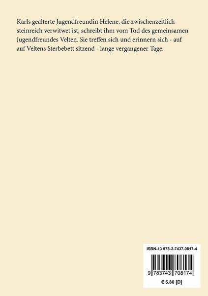 Karls gealterte Jugendfreundin Helene, die zwischenzeitlich steinreich verwitwet ist, schreibt ihm vom Tod des gemeinsamen Jugendfreundes Velten. Sie treffen sich und erinnern sich - auf auf Veltens Sterbebett sitzend - lange vergangener Tage.