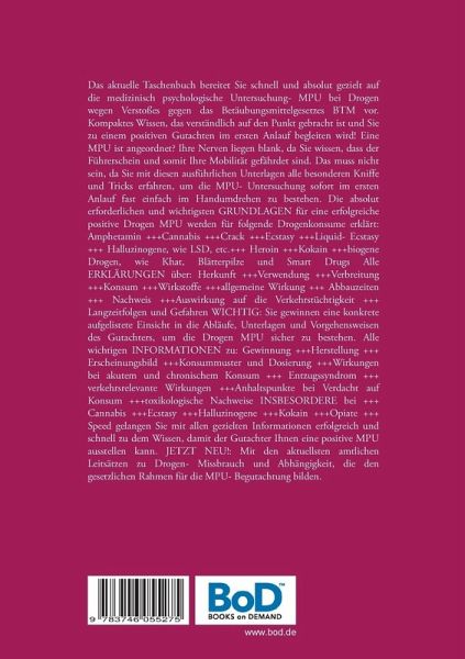 Das aktuelle Taschenbuch bereitet Sie schnell und absolut gezielt auf die medizinisch psychologische Untersuchung -MPU bei Drogen wegen Verstoßes gegen das Betäubungsmittelgesetzes BTM- vor. Kompaktes Wissen, das verständlich auf den Punkt gebracht ist und Sie zu einem positiven Gutachten im ersten Anlauf begleiten wird! Eine MPU ist angeordnet? Ihre Nerven liegen blank, da Sie wissen, dass der Führerschein und somit Ihre Mobilität gefährdet sind. Das muss nicht sein, da Sie mit diesen ausführlichen Unterlagen alle besonderen Kniffe und Tricks erfahren, um die MPU- Untersuchung sofort im ersten Anlauf fast einfach im Handumdrehen zu bestehen. Die absolut erforderlichen und wichtigsten GRUNDLAGEN für eine erfolgreiche positive Drogen MPU werden für folgende Drogenkonsume erklärt: Amphetamin +++Cannabis +++Crack +++Ecstasy +++Liquid- Ecstasy +++ Halluzinogene, wie LSD, etc.+++ Heroin +++Kokain +++biogene Drogen, wie Khat, Blätterpilze und Smart Drugs Alle ERKLÄRUNGEN über: Herkunft+++Verwendung +++Verbreitung +++Konsum +++Wirkstoffe +++allgemeine Wirkung +++ Abbauzeiten +++ Nachweis +++Auswirkung auf die Verkehrstüchtigkeit +++Langzeitfolgen und Gefahren WICHTIG: Sie gewinnen eine konkrete aufgelistete Einsicht in die Abläufe, Unterlagen und Vorgehensweisen des Gutachters, um die Drogen-MPU sicher zu bestehen. Alle wichtigen INFORMATIONEN zu: Gewinnung +++Herstellung +++Erscheinungsbild +++Konsummuster und Dosierung +++Wirkungen bei akutem und chronischem Konsum +++ Entzugssyndrom +++verkehrsrelevante Wirkungen +++Anhaltspunkte bei Verdacht auf Konsum +++toxikologische Nachweise INSBESORDERE bei +++Cannabis +++Ecstasy +++Halluzinogene +++Kokain +++Opiate +++Speed gelangen Sie mit allen gezielten Informationen erfolgreich und schnell zu dem Wissen, damit der Gutachter Ihnen eine positive MPU ausstellen kann. JETZT NEU!: Mit den aktuellsten amtlichen Leitsätzen zu Drogen- Missbrauch und Abhängigkeit, die den gesetzlichen Rahmen für die MPU- Begutachtung bilden. DAS EXTRA!: Ausschlaggebende Prognosen und Begründungen aus Originalgutachten, die zu einer positiven MPU führen: +++ Alle maßgeblichen Sachverhalte und Schlussfolgerungen, die für die positive Beurteilung notwendig sind +++MPU- Gutachten und wichtige Erklärungen: 4 ausführliche positive bzw. negative original Drogen- MPU- Gutachten mit Erklärungen, die Fallen aufzeigen und wie man es besser macht +++der wichtige Gutachter-Fragenkatalog mit ausführlichen Antworten.