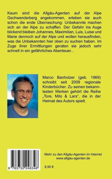 Kaum sind die Allgäu-Agenten auf der Alpe Gschwenderberg angekommen, erleben sie auch schon die erste Überraschung: Unbekannte machen sich an der Alpe zu schaffen. Der Gefahr ins Auge blickend bleiben Johannes, Maximilian, Luis, Luise und Marie dennoch auf der Alpe und wollen herausfinden, was die Unbekannten hier oben zu suchen haben. Im Zuge ihrer Ermittlungen geraten sie jedoch sehr schnell in ein gefährliches Abenteuer...