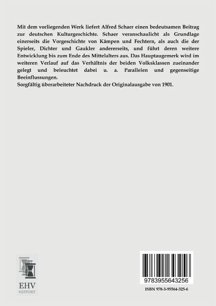 Mit dem vorliegenden Werk liefert Alfred Schaer einen bedeutsamen Beitrag zur deutschen Kulturgeschichte. Schaer veranschaulicht als Grundlage einerseits die Vorgeschichte von Kämpen und Fechtern, als auch die der Spieler, Dichter und Gaukler andererseits, und führt deren weitere Entwicklung bis zum Ende des Mittelalters aus. Das Hauptaugemerk wird im weiteren Verlauf auf das Verhältnis der beiden Volksklassen zueinander gelegt und beleuchtet dabei u. a. Parallelen und gegenseitige Beeinflussungen.