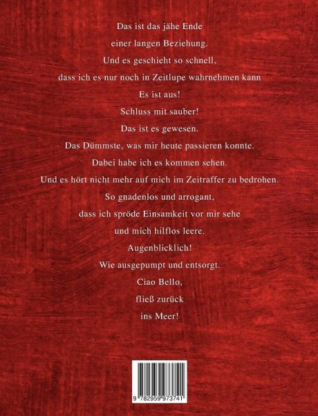 Das ist das jähe Ende einer langen Beziehung. Und es geschieht so schnell, dass ich es nur noch in Zeitlupe wahrnehmen kann. Es ist aus! Schluss mit sauber! Das ist es gewesen. Das Dümmste, was mir heute passieren konnte. Dabei habe ich es kommen sehen. Und es hört nicht mehr auf mich im Zeitraffer zu bedrohen. So gnadenlos und arrogant, dass ich spröde Einsamkeit vor mir sehe und mich hilflos leere. Augenblicklich! Wie ausgepumpt und entsorgt. Ciao Bello, fließ zurück ins Meer!