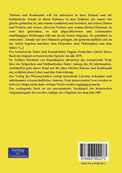Dr. Freiherr Eberhard von Bodenhausen übersetzte das wundervolle Werk über die Belgischen und Holländischen Maler Anfang des 20. Jahrhunderts. Ausführlich geht dieser Band auf die alten Meister Rubens und Rembrandt ein, schildert deren Leben und ihre Entwicklung.