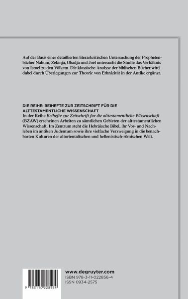 Die Untersuchung der Fremdvölkerworte im Kontext der Bücher Nahum, Zefanja, Obadja und Joel stellt sich gegen den Trend der gegenwärtigen Exegese des Dodekapropheton, überwiegend nach buchübergreifenden Zusammenhängen und Themen zu suchen. Es geht vielmehr darum, die Sicht der Fremdvölker in der jeweiligen individuellen Prophetenschrift literarisch, historisch und anthropologisch zu erörtern. Dem jeweiligen prophetischen Buch wird dabei besondere Aufmerksamkeit geschenkt.