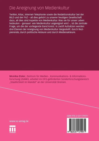 Twitter, Attac, Internet-Telephonie sowie die Redaktionskultur bei der BILD und der FAZ - all dies gehört zu unserer heutigen Gesellschaft dazu, all dies sind Aspekte von Medienkultur. Was sie für unser Leben bedeuten - genauer: wie Medienkultur angeeignet wird -, ist die zentrale Frage, um die der vorliegende Band kreist. In zwölf Aufsätzen werden drei Ebenen der Aneignung von Medienkultur dargestellt: durch Rezipierende, durch politische Akteure und durch Medienakteure.