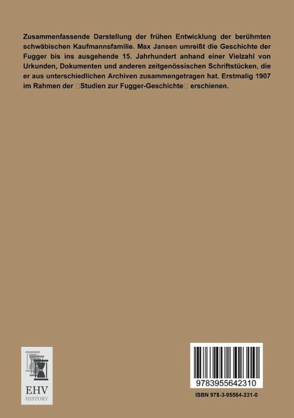 Zusammenfassende Darstellung der frühen Entwicklung der berühmten schwäbischen Kaufmannsfamilie. Max Jansen umreißt die Geschichte der Fugger bis ins ausgehende 15. Jahrhundert anhand einer Vielzahl von Urkunden, Dokumenten und anderen zeitgenössischen Schriftstücken, die er aus unterschiedlichen Archiven zusammengetragen hat. Erstmalig 1907 im Rahmen der Studien zur Fugger-Geschichte erschienen.