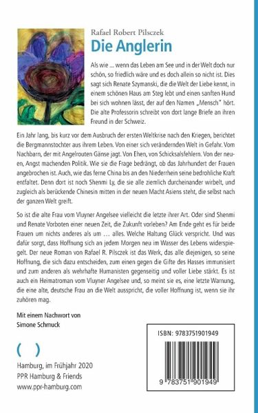Als wie wenn das Leben am See und in der Welt doch nur schön, so friedlich wäre und es doch allein so nicht ist. Dies sagt sich ausgerechnet Renate Szymanski, die die Welt der Liebe kennt, in einem schönen Haus am Steg lebt und einen sanften Hund bei sich wohnen lässt, der auf den Namen Mensch hört. Die alte Professorin schreibt von dort lange Briefe an ihren Freund in der Schweiz. Kurz vor Ausbruch der ersten Weltkrise nach den Großen Kriegen berichtet sie aus ihrem Leben. Vom Nachbarn, der mit Angelrouten Gänse jagt. Von großen Schicksalsfehlern. Wie sie die große Frage bedrängt, ob das Jahrhundert der Frauen angebrochen ist und ob Frauen die Chancen heute ergreifen, da die Macht doch zum Greifen nahe auf dem Tisch liegt. Auch, wie das ferne China bis an den Niederrhein seine bedrohliche Kraft entfaltet. Denn dort ist noch die junge Shenmi Ly, die Renate und ihre Freunde ziemlich durcheinander wirbelt. Zugleich steht die berückende Chinesin, eine Malerin und Umweltschützerin, mitten in der neuen Macht Asiens, die selbst nach der ganzen Welt greift. So ist die alte Frau vom Vluyner Angelsee vielleicht die letzte ihrer Art. Oder sind Shenmi und Renate Vorboten einer neuen Zeit, die Zukunft vorleben? Am Ende geht es für beide Frauen um nichts anderes als um alles. Welche Haltung Glück verspricht. Und was dafür sorgt, dass Hoffnung sich an jedem Morgen neu im Wasser des Lebens widerspiegelt.Der neue Roman von Rafael R. Pilsczek ist das Werk, das alle diejenigen, so seine Hoffnung, die sich dazu entscheiden, zum einen gegen die Gifte des Hasses immunisiert und zum anderen als wehrhafte Humanisten gegenseitig und voller Liebe stärkt. Es ist auch ein Heimatroman vom Vluyner Angelsee und, so meint sie es, eine letzte Warnung, die eine alte, deutsche Frau an die Welt ausspricht, die voller Hoffnung ist, wenn sie ihr zuhören mag.