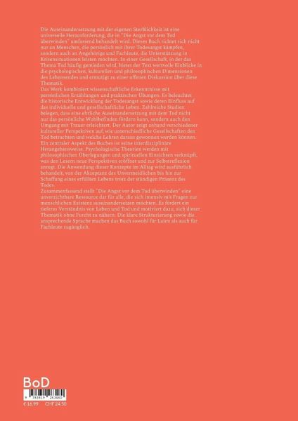 Die Auseinandersetzung mit der eigenen Sterblichkeit ist eine universelle Herausforderung, die in "Die Angst vor dem Tod überwinden" umfassend behandelt wird. Dieses Buch richtet sich nicht nur an Menschen, die persönlich mit ihrer Todesangst kämpfen, sondern auch an Angehörige und Fachleute, die Unterstützung in Krisensituationen leisten möchten. In einer Gesellschaft, in der das Thema Tod häufig gemieden wird, bietet der Text wertvolle Einblicke in die psychologischen, kulturellen und philosophischen Dimensionen des Lebensendes und ermutigt zu einer offenen Diskussion über diese Thematik. Das Werk kombiniert wissenschaftliche Erkenntnisse mit persönlichen Erzählungen und praktischen Übungen. Es beleuchtet die historische Entwicklung der Todesangst sowie deren Einfluss auf das individuelle und gesellschaftliche Leben. Zahlreiche Studien belegen, dass eine ehrliche Auseinandersetzung mit dem Tod nicht nur das persönliche Wohlbefinden fördern kann, sondern auch den Umgang mit Trauer erleichtert. Der Autor zeigt anhand verschiedener kultureller Perspektiven auf, wie unterschiedliche Gesellschaften den Tod betrachten und welche Lehren daraus gewonnen werden können. Ein zentraler Aspekt des Buches ist seine interdisziplinäre Herangehensweise. Psychologische Theorien werden mit philosophischen Überlegungen und spirituellen Einsichten verknüpft, was den Lesern neue Perspektiven eröffnet und zur Selbstreflexion anregt. Die Anwendung dieser Konzepte im Alltag wird ausführlich behandelt, von der Akzeptanz des Unvermeidlichen bis hin zur Schaffung eines erfüllten Lebens trotz der ständigen Präsenz des Todes. Zusammenfassend stellt "Die Angst vor dem Tod überwinden" eine unverzichtbare Ressource dar für alle, die sich intensiv mit Fragen zur menschlichen Existenz auseinandersetzen möchten. Es fördert ein tieferes Verständnis von Leben und Tod und motiviert dazu, sich dieser Thematik ohne Furcht zu nähern. Die klare Strukturierung sowie die ansprechende Sprache machen das Buch sowohl für Laien als auch für Fachleute zugänglich.