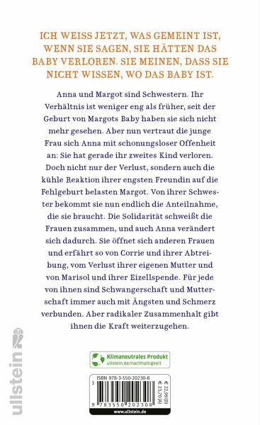 Margot und Anna sind Schwestern. Ihr Verhältnis ist weniger eng als früher, seit der Geburt von Margots Baby haben sie sich nicht mehr gesehen. Aber nun vertraut Margot sich Anna mit schonungsloser Offenheit an: Sie hat gerade ihr zweites Kind verloren. Doch nicht nur der Verlust, sondern auch die kühle Reaktion ihrer engsten Freundin auf die Fehlgeburt belasten Margot. Von ihrer Schwester bekommt Margot nun endlich die Anteilnahme, die sie braucht. Die Solidarität schweißt die Frauen zusammen, und auch Anna kann sich wieder öffnen. Sie erzählt von anderen Frauen. Von Corrie und ihrer Abtreibung, von Marisol und ihrer Eizellspende. Für jede von ihnen sind Schwangerschaft und Mutterschaft immer auch mit Ängsten und Schmerz verbunden. Aber radikaler Zusammenhalt gibt ihnen die Kraft weiterzugehen.