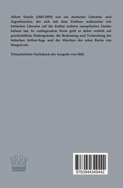 Albert Schulz (1802-1893) war ein deutscher Literatur- und Sagenforscher, der sich mit dem Einfluss walisischer wie britischer Literatur auf die Kultur anderer europäischer Länder befasst hat. In vorliegendem Werk geht er dabei vertieft auf geschichtliche Hintergründe, die Bedeutung und Verbreitung der brtischen Arthur-Saga und der Märchen des roten Buchs von Hergest ein.
