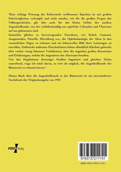 Dieses Buch über die Augenheilkunde in der Römerzeit ist ein unveränderter Nachdruck der Originalausgabe von 1907.