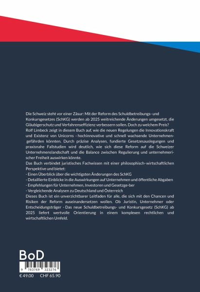 Die Schweiz steht vor einer Zäsur: Mit der Reform des Schuldbetreibungs- und Konkursgesetzes (SchKG) werden ab 2025 weitreichende Änderungen umgesetzt, die Gläubigerschutz und Verfahrenseffizienz verbessern sollen. Doch zu welchem Preis? Rolf Limbeck zeigt in diesem Buch auf, wie die neuen Regelungen die Innovationskraft und Existenz von Unicorns -hochinnovative und schnell wachsende Unternehmen- gefährden könnten. Durch präzise Analysen, fundierte Gesetzesauslegungen und praxisnahe Fallstudien wird deutlich, wie sich diese Reform auf die Schweizer Unternehmenslandschaft und die Balance zwischen Regulierung und unternehmeri-scher Freiheit auswirken könnte. Das Buch verbindet juristisches Fachwissen mit einer philosophisch-wirtschaftlichen Perspektive und bietet: - Einen Überblick über die wichtigsten Änderungen des SchKG - Detaillierte Einblicke in die Auswirkungen auf Unternehmen und öffentliche Abgaben - Empfehlungen für Unternehmen, Investoren und Gesetzge-ber - Vergleichende Analysen zu Deutschland und Österreich Dieses Buch ist ein unverzichtbarer Leitfaden für alle, die sich mit den Chancen und Risiken der Reform auseinandersetzen wollen. Ob Juristin, Unternehmer oder Entscheidungsträger -Das neue Schuldbetreibungs- und Konkursgesetz (SchKG) ab 2025 liefert wertvolle Orientierung in einem komplexen rechtlichen und wirtschaftlichen Umfeld. Eine fesselnde und fundierte Analyse, die weit über das juristische Fachpublikum hinausreicht.