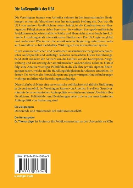 Die Vereinigten Staaten von Amerika nehmen in den internationalen Beziehungen schon seit Jahrzehnten eine herausragende Stellung ein. Das, was die USA von anderen Großmächten unterscheidet, ist die Kombination aus überragenden Fähigkeiten in vielen Bereichen: Sie verfügen über große militärische Projektionsmacht, wirtschaftliche Stärke und üben nicht zuletzt durch ihre kulturelle Anziehungskraft internationalen Einfluss aus. Die USA agieren global und umfassend. Was immer die amerikanische Regierung unternimmt oder auch unterlässt, es hat nachhaltige Wirkung auf das internationale System.In der wissenschaftlichen und praktischen Auseinandersetzung mit amerikanischer Außenpolitik sind vielfältige Faktoren zu beachten. Dieser Einführungsband stellt zunächst die Akteure vor, die Einfluss auf die Konzeption, Ausgestaltung und Umsetzung der amerikanischen Außenpolitik nehmen. Darauf folgt eine Analyse wichtiger Politikfelder, die alle ihre jeweils eigenen Bedingungen haben, welche auf die Handlungsfähigkeiten der Akteure einwirken. Im dritten Teil werden die Entwicklungen und gegenwärtigen Herausforderungen wichtiger multilateraler Beziehungen aufgezeigt.Dieses Lehrbuch bietet eine systematische politikwissenschaftliche Einführung in die Außenpolitik der Vereinigten Staaten von Amerika. Es soll ein Grundverständnis der amerikanischen Außenpolitik vermitteln und einen Überblick über die Akteure, Politikfelder und Beziehungen geben, die in der amerikanischen Außenpolitik von Bedeutung sind.