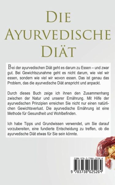 Bei der ayurvedischen Diät geht es darum zu Essen - und zwar gut. Bei Gewichtszunahme geht es nicht darum, wie viel wir essen, sondern wie viel wir wovon essen. Das ist genau das Problem, das die ayurvedische Diät anspricht und anpackt.Durch dieses Buch zeige ich ihnen den Zusammenhang zwischen der Natur und unserer Ernährung. Mit Hilfe der ayurvedischen Prinzipien erreichen Sie nicht nur einen natürlichen Gewichtsverlust. Die ayurvedische Ernährung ist eine Methode für Gesundheit und Wohlbefinden. Ich habe Tipps und Grundwissen verwendet, um Sie darauf vorzubereiten, eine fundierte Entscheidung zu treffen, ob die ayurvedische Diät etwas für Sie sein könnte.