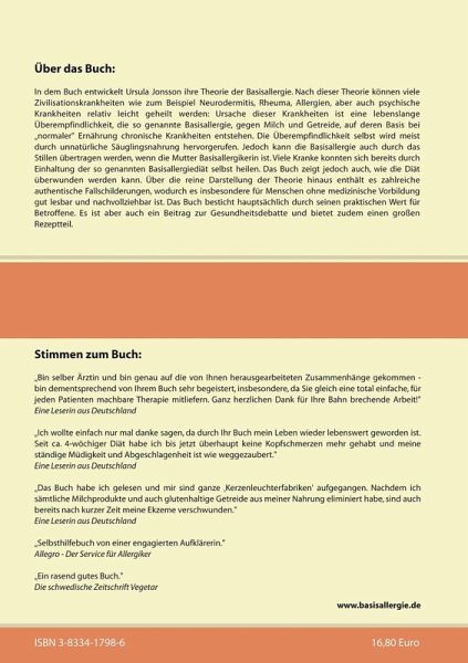 In dem Buch entwickelt Ursula Jonsson ihre Theorie der Basisallergie und stellt ausführlich die so genannte Basisallergiediät vor, mit Hilfe derer sich bereits viele chronisch Kranke mit den unterschiedlichsten Krankheiten wie Rheuma, Neurodermitis, psychischen Beschwerden oder Allergien selbst heilen konnten. Das Buch zeigt jedoch auch, wie die Diät überwunden werden kann. Über die reine Darstellung der Theorie hinaus enthält es zahlreiche authentische Fallschilderungen, wodurch es insbesondere für Menschen ohne medizinische Vorbildung gut lesbar und nachvollziehbar ist. Das Buch zeichnet sich hauptsächlich durch seinen praktischen Wert für Betroffene aus. Es ist aber auch ein Beitrag zur Gesundheitsdiskussion und bietet zudem einen großen Rezeptteil.